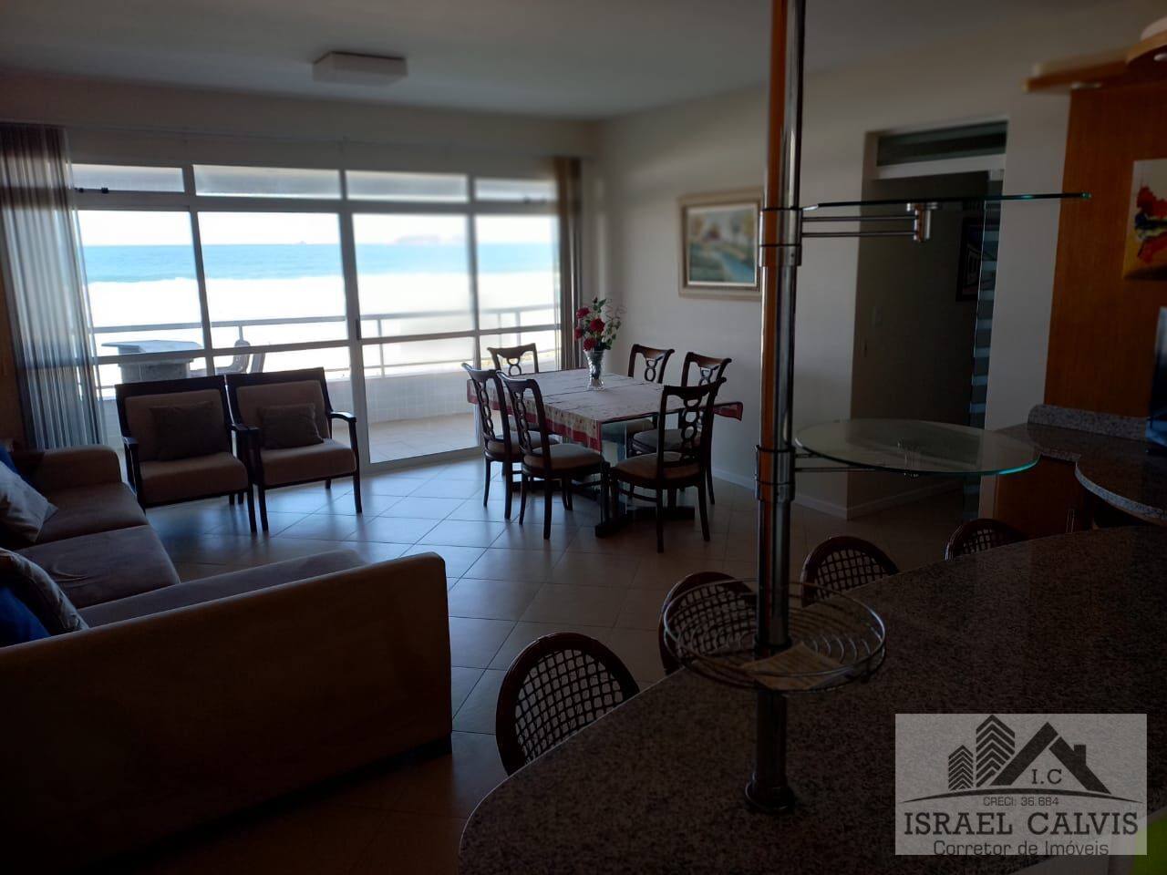 Armário na cozinhaCozinhaGás centralGás individualHidrômetro individualInterfoneInternetIsolamento acústicoRua asfaltadaSacada com churrasqueiraVista do marVista exteriorZelador