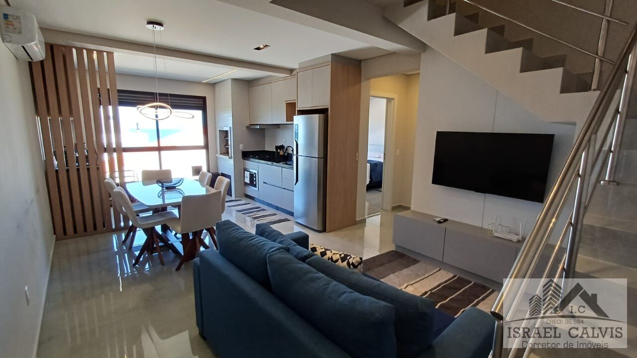 Apartamento cobertura duplex, com 3 dormitórios sendo 1 suíte e uma suíte master, banheiro social, sala com dois ambientes, cozinha com churrasqueira, lavanderia, varanda na suíte master com linda vista do mar e garagem coberta.